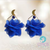 Aro baño oro amarillo con flor de tela y ágata azul, piedra natural que entrega armonía y fomenta la buena comunicación.