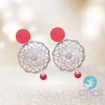 Aro baño plata con cuero y ágata roja, piedra natural que sirve para armonizar las energías, es calmante y sanadora.