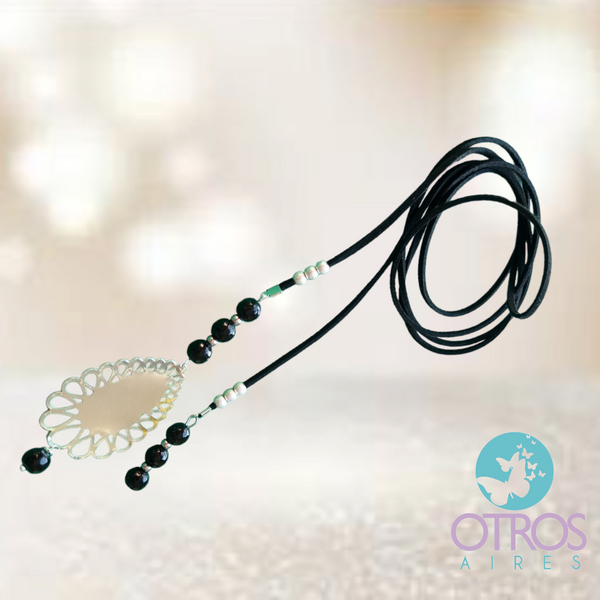 Collar baño plata con gamuza negro y ágata negra, piedra natural que entrega protección, equilibrio del cuerpo y la mente.